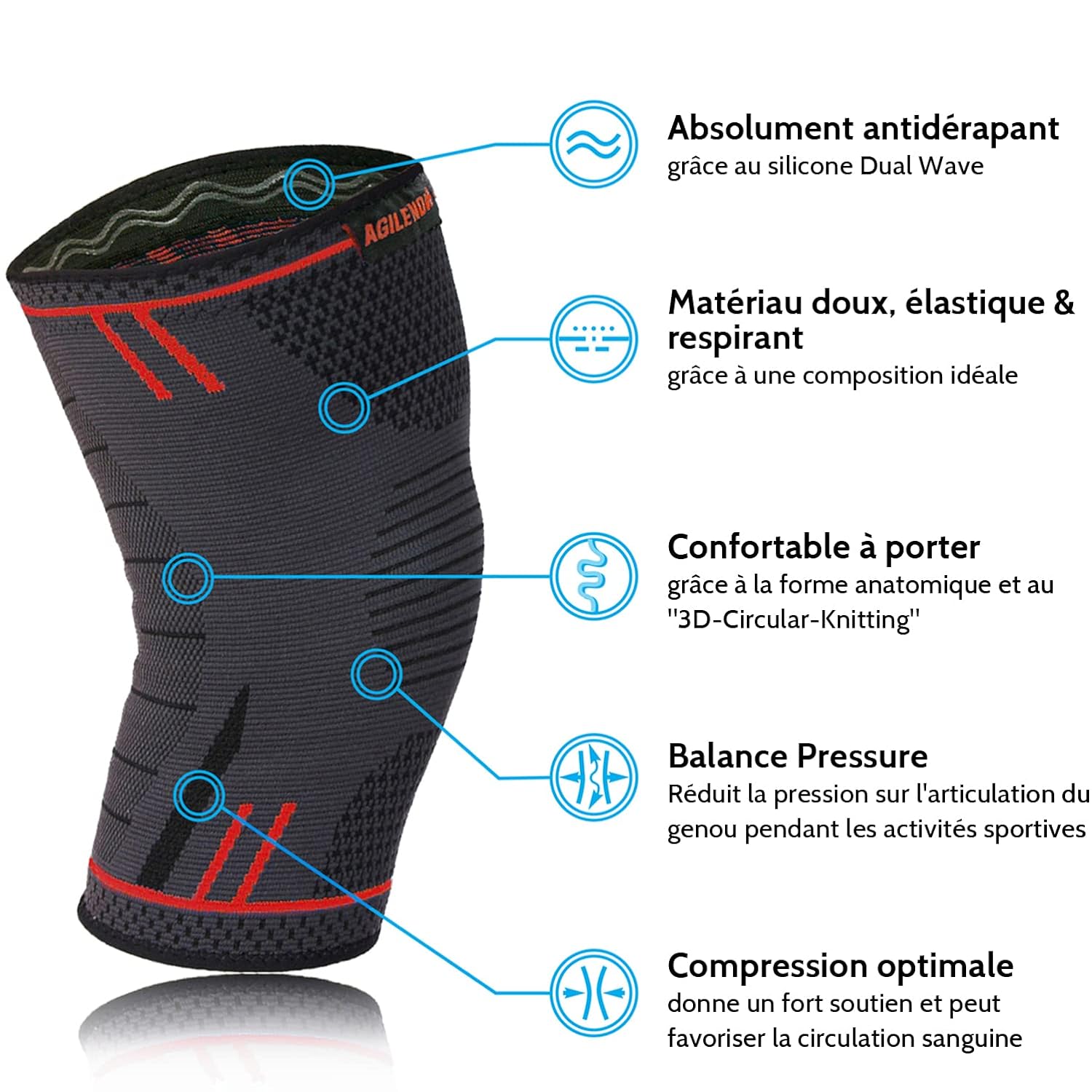 • Performance et Confort Réunis : Cette genouillère soutient vos mouvements articulaires pendant l’exercice, prévient les possibles douleurs et favorise la circulation sanguine et l’oxygénation, améliorant ainsi votre capacité de mouvement musculaire.