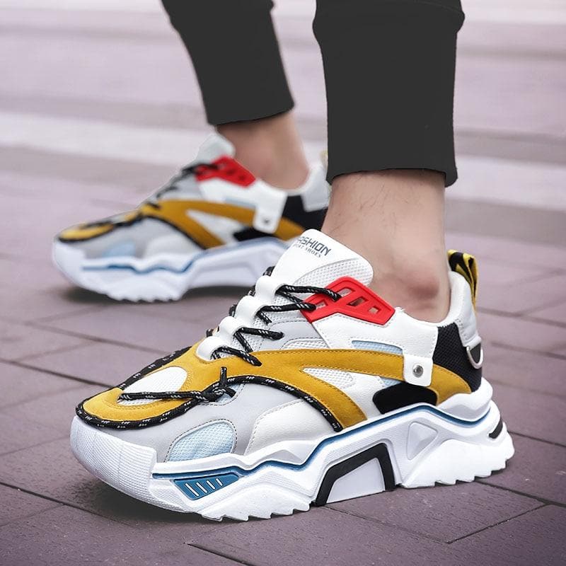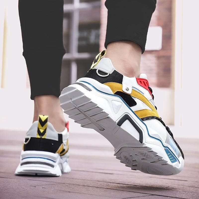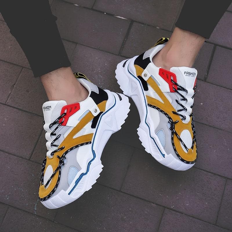 • Design audacieux et tendance : Une combinaison unique de jaune moutarde, blanc croustillant, avec une touche de noir et de rouge pour un look urbain chic qui attire les regards.